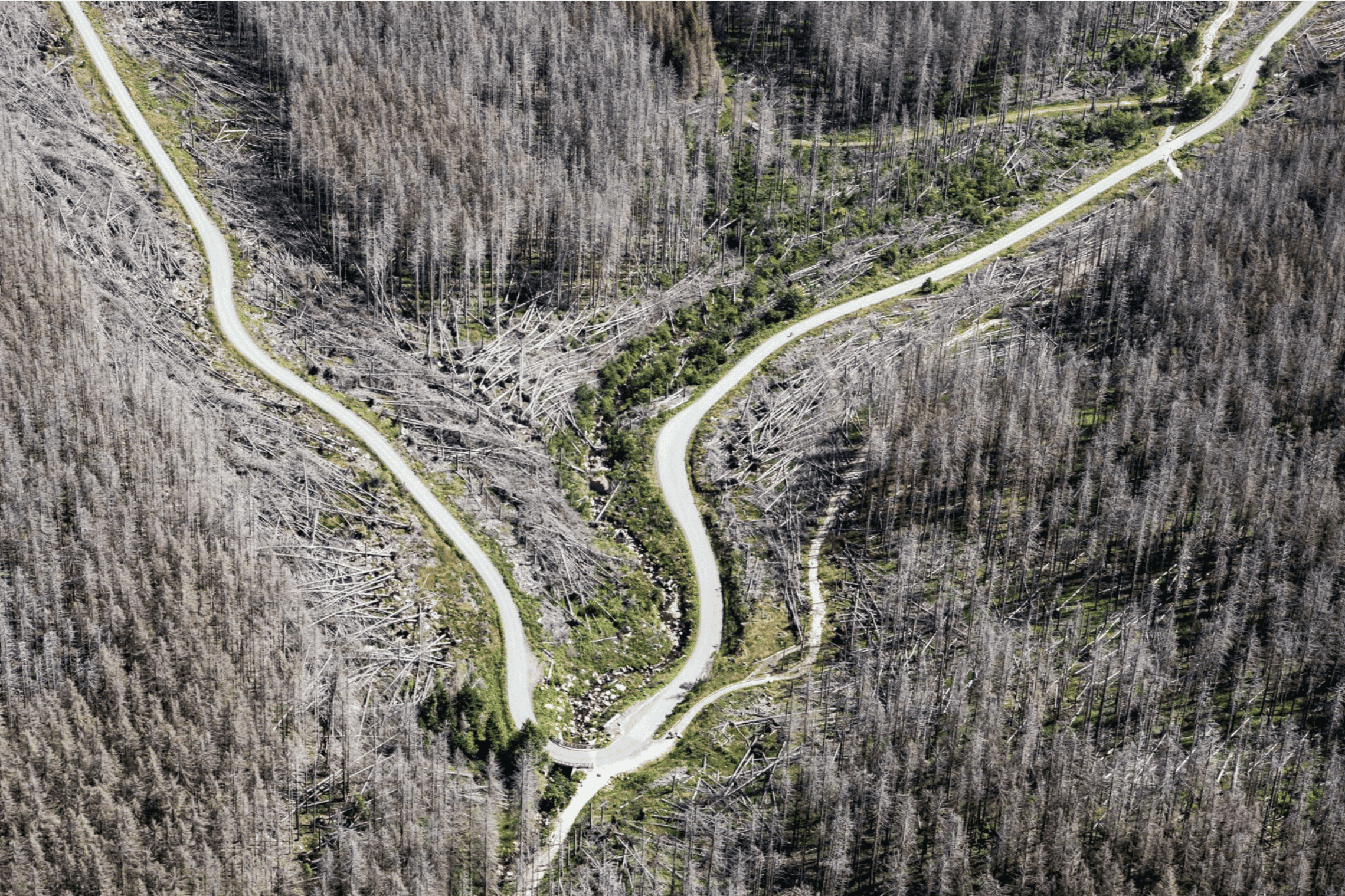Prolonged drought weakens trees, which can then no longer adequately protect themselves against bark beetles and other infestations. As the trees are close together, a beetle infestation can easily spread to the entire forest and destroy large areas of it.